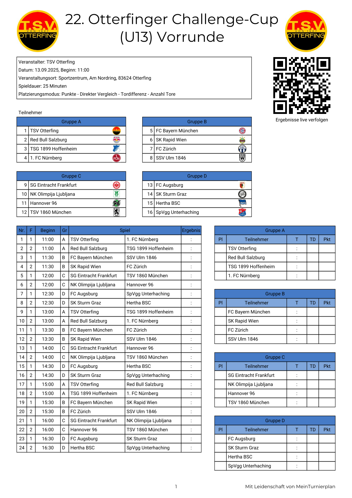 Alle Spielpläne und Ergebnisse auf meinturnierplan: