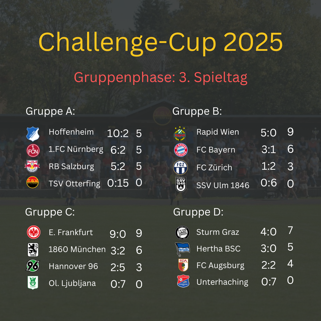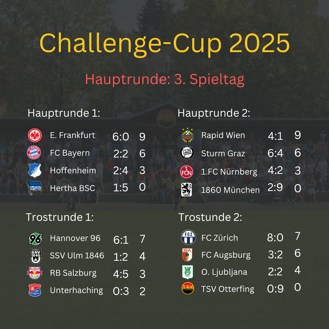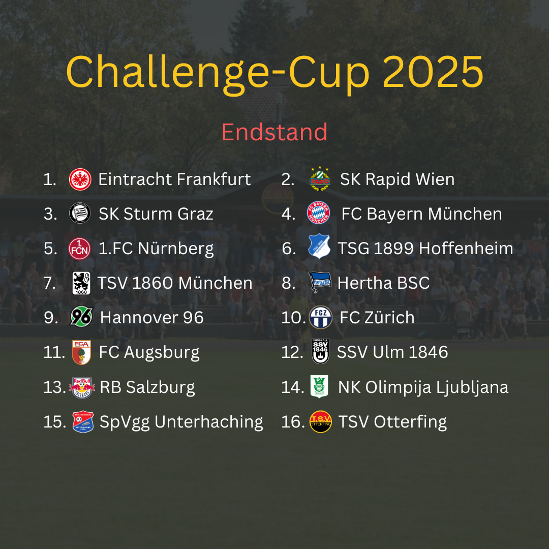 Servus und herzlich willkommen zum Liveblog des 22. Otterfinger Challenge-Cup. Hier findet ihr einen Rückblick und alle Ergebnisse vom Jahr 2025.