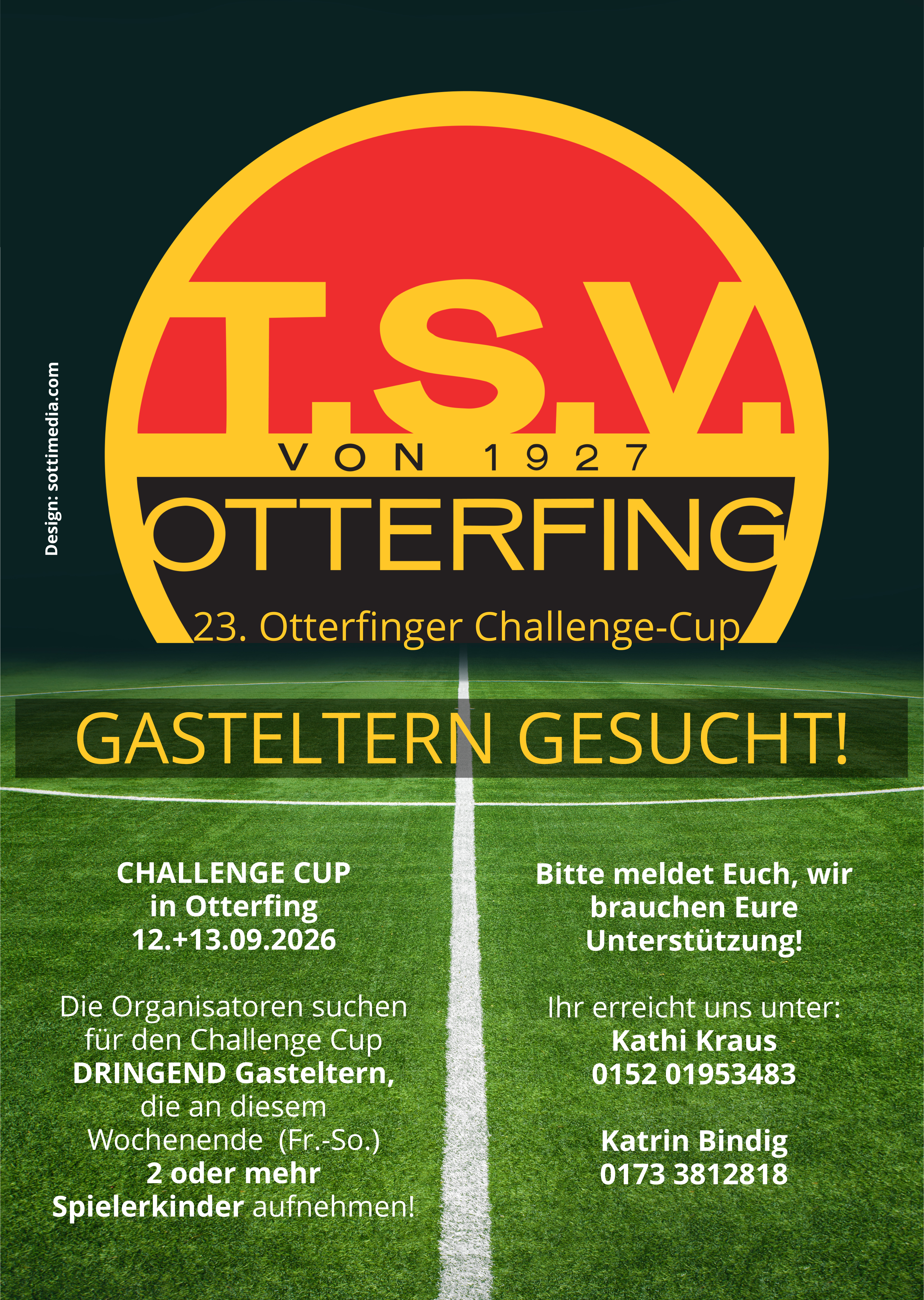 - alle Mannschaften werden an beiden Turniertagen mittags vom TSV Otterfing mit Essen verpflegt, Frühstück und warmes Abendessen erhalten die Kinder von den Gasteltern - bitte bei der Versorgung unserer Gäste daran denken, dass es Kinder gibt, die aus religiösen oder anderen Gründen kein Schweinefleisch essen oder auch Vegetarier sein könnten. Bei anderen Unverträglichkeiten werden die Gasteltern gesondert informiert